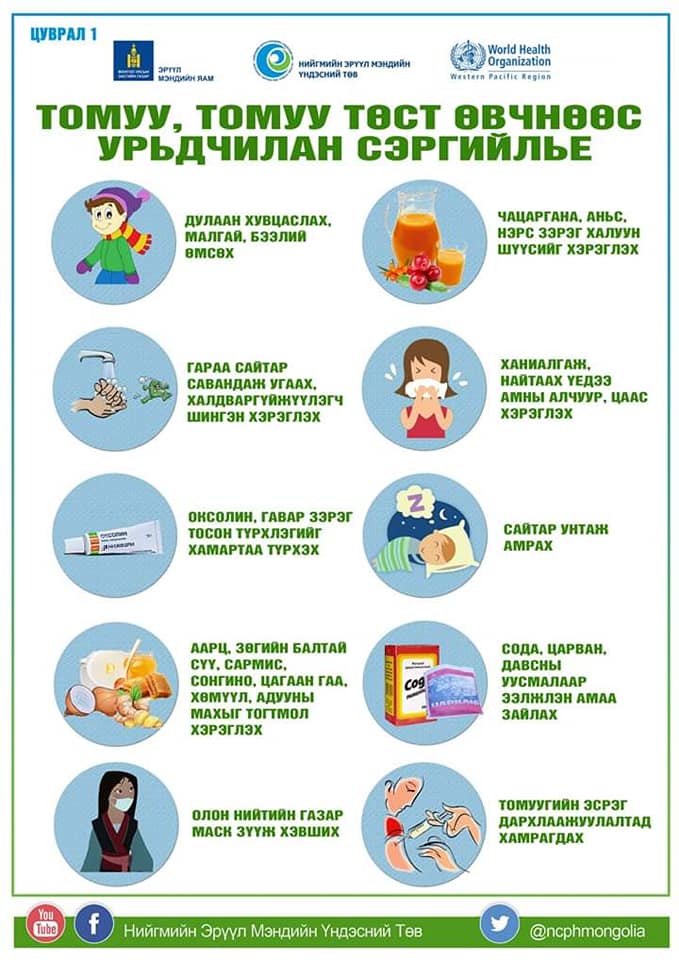Хүйтэн сэрүүний улирал эхлэхтэй зэрэгцэн томуу, томуу төст өвчний дэгдэлт нэмэгддэг. Тэгвэл томуу өвчний үед гэрийн болон сургууль, цэцэрлэгийн орчинд хэрэглэж болох энгийн аргуудаас хүргэж байна.
