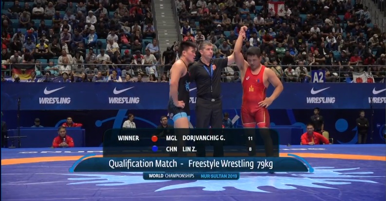79 кг-д Доржваанчигийн Гомбодорж Хятадын Лин Зепинтэй барилдлаа. Харилцан довтолсон, оноо түүсэн барилдаанд манай бөх 11-8 ялалт байгууллаа.