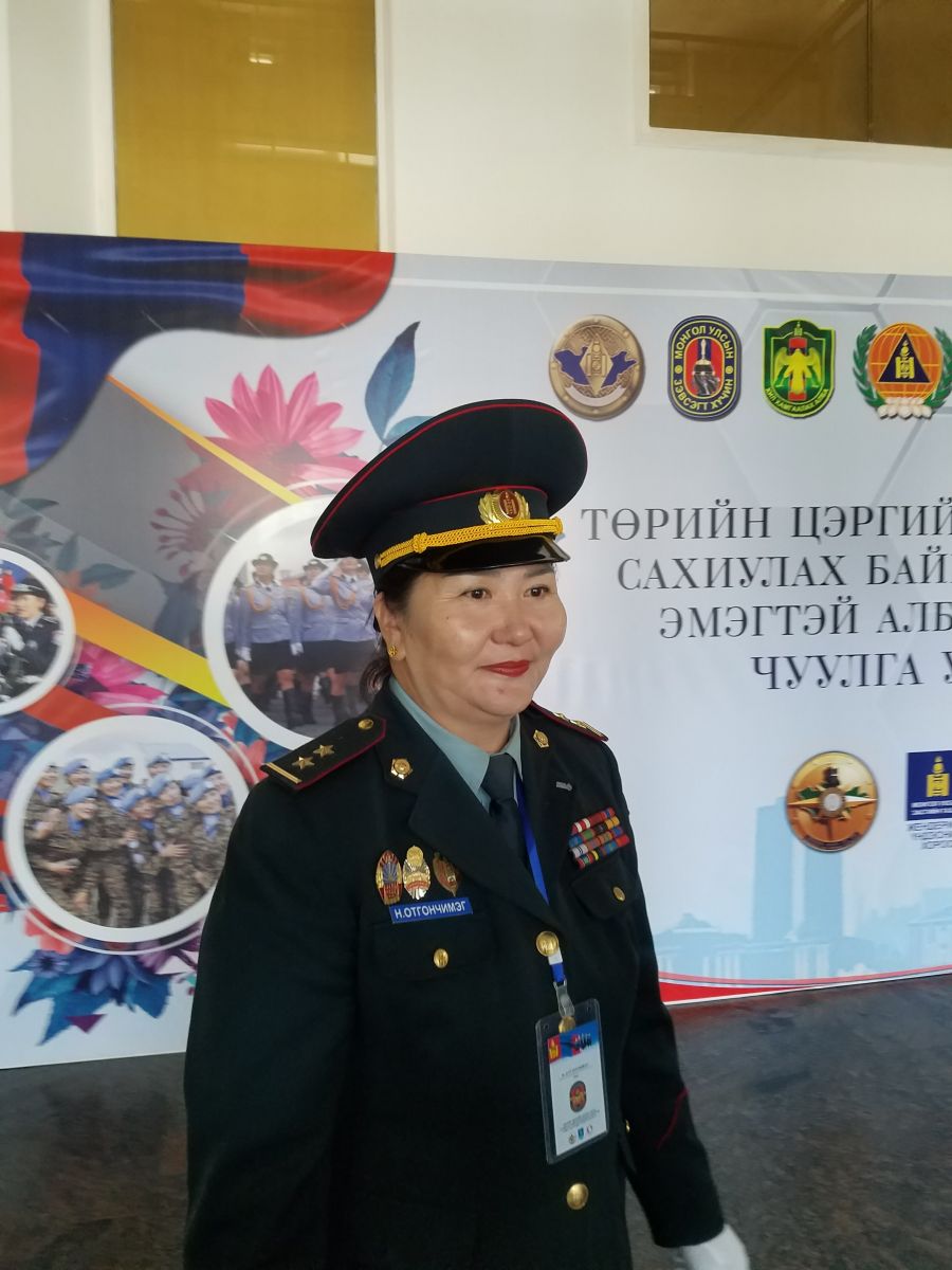 Зэвсэгт хүчний жанжин штабын Энхийг дэмжих хамтын ажиллагааны хэлтсийн ахлах мэргэжилтэн, хурандаа Н.Нямжаргал “Үндэсний Батлан хамгаалах их сургуулийг 2000 онд Цэргийн радио холбооны инженер мэргэжлээр төгссөөд зэвсэгт хүчинд 24 жил алба хааж байна. 2006 онд Бүгд найрамдах ардчилсан Конго улсад Монгол Улсаас анхны эмэгтэй энхийг сахиулагч болж, нэг жил үүрэг гүйцэтгээд ирсэн. Өдгөө Монгол Улсын 645 эмэгтэй офицер, ахлагч НҮБ-ын Энхийг сахиулах ажиллагаанд цэргийн ажиглагч, штабын офицероор болон цэргийн багт үүрэг гүйцэтгэсэн байна. Монгол Улс 2006 оноос НҮБ-д цэрэг хандивлагч дэлхийн 126 орноос нийт тоогоор 25, эмэгтэй алба хаагчдынхаа тоогоор 17, нэг хүнд ногдох энхийг сахиулагчдаараа Ази тивдээ тэргүүлж байна” гэв.