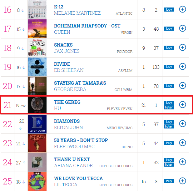 Эхлээд тэд Их Британийн ТОП 100 дууны жагсаалтад багтсан. "Official Charts" байгууллагын гаргадаг энэ жагсаалтад багтах нь дэлхий дахинд хүлээн зөвшөөрөгдсөний баталгаа юм. Нэр хүндтэй энэ жагсаалтад монгол уран бүтээлч орж байсан удаа байхгүй. "The Hu" хамтлаг 21-т бичигдсэн.