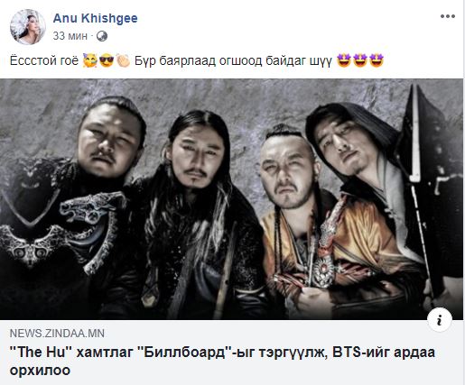 Урлаг соёл, рок попынхон, монголчууд  "The Hu" хамтлагийн амжилтыг талаар юу хэлсэн нь таны сонирхлыг татах болов уу.