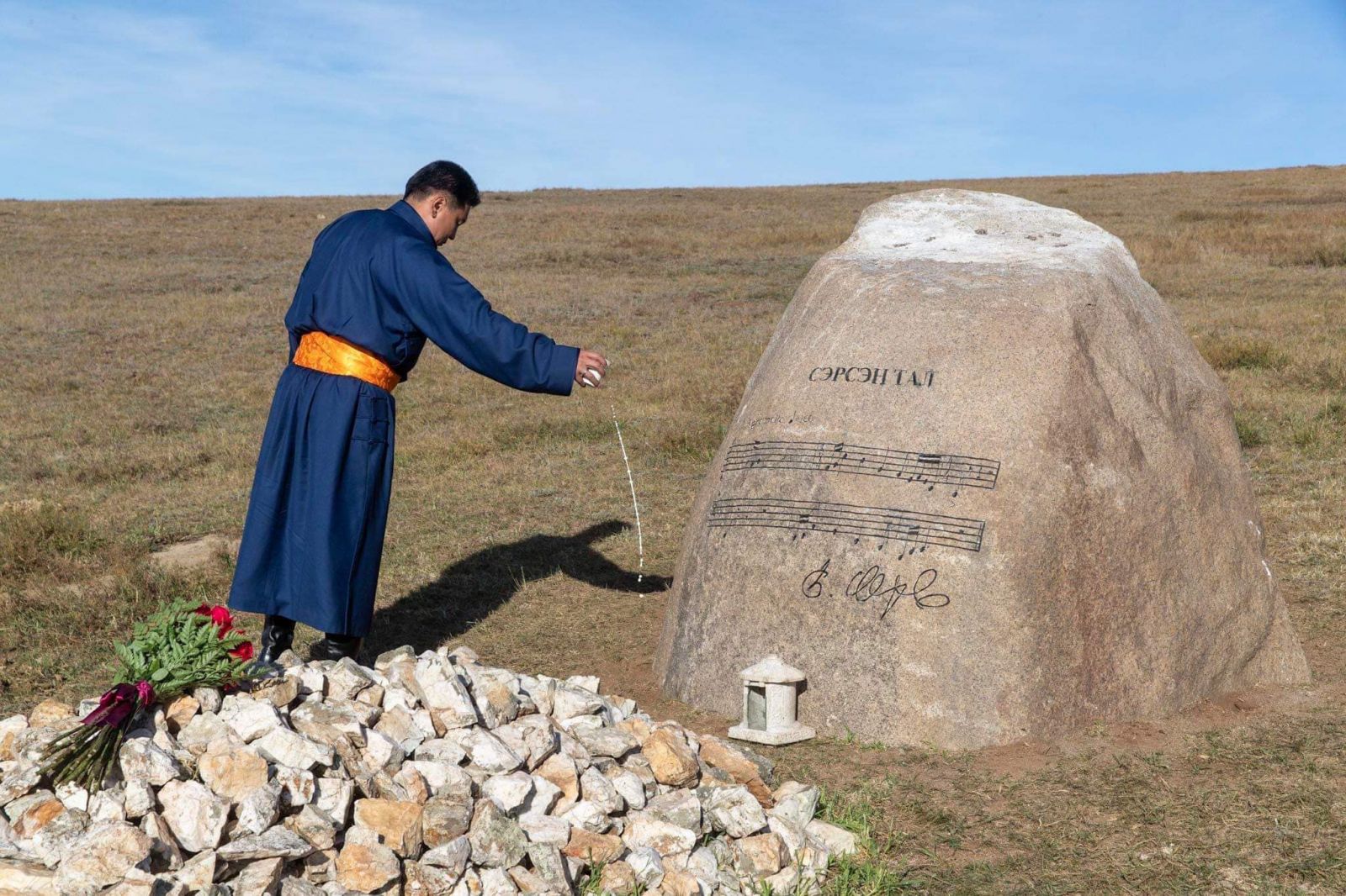 Ерөнхий сайд зүүн аймгийг зорих замдаа суут хөгжмийн зохиолч Б.Шаравын алтан шарилд тэргүүн бөхийж, хүндэтгэл үзүүллээ.