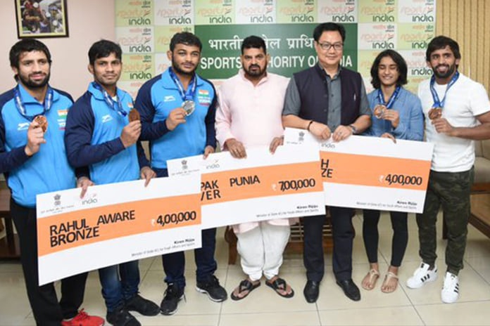Уулынхан буюу Гүржүүдээс чөлөөт бөхийн төрөлд Бека Ломтазе, Гено Петриашвили, сонгомол бөхийн төрөлд Нугзару Цурцумия, Лаша Гобазе нар дэлхийн аварга болцгоосон. Тэгвэл Гүржийн барилгын “Арки” компаниас аваргуудаа Тбилисид байрлах орон сууны түлхүүрийг гардуулан өгчээ. Тэгвэл Энэтхэгийн чөлөөт бөхийн холбоо эрэгтэйчүүдийн 86 кг-ын жинд мөнгөн медаль хүртсэн Дипак Пунияг 700 мянган рүпигээр, хүрэл медаль хүртсэн Рави Кумар (57 кг), Рахул Аваре (61 кг), Бажранг Пуния (65 кг), Винеш (53 кг) 400 мянган рүпигээр шагнасан байна.