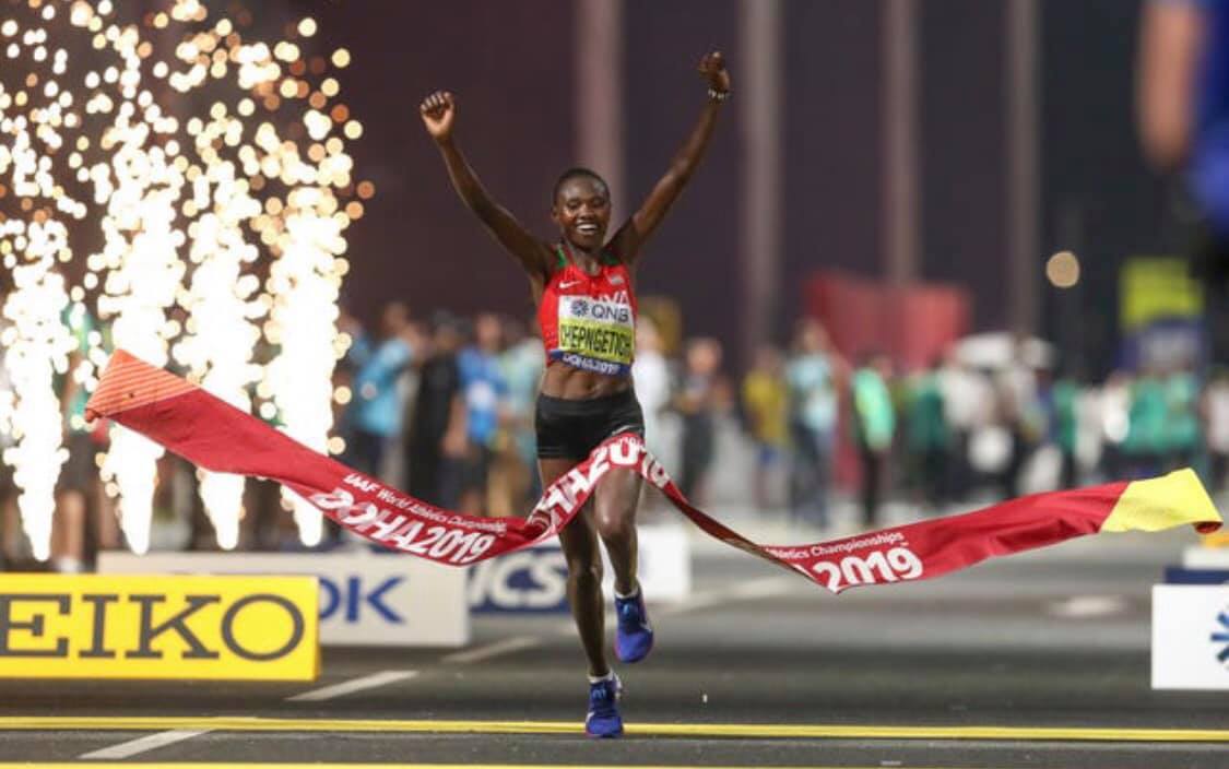 Есдүгээр сарын 27-28-нд шилжих шөнө буюу орон нутгийн цагаар шөнийн 00 цагаас эмэгтэйчүүдийн марафон гүйлтийн тэмцээн эхэлсэн. Энэ нь шөнө дунд болж буй анхны ДАШТ-ий зай, төрөл болов. Катарт өдийд цаг агаар тун халуун байдаг тул тамирчдаас ихээхэн тэсвэр,тэвчээр шаарддаг марафон гүйлт, 20 км болон 50 км-ын спорт алхааны төрлүүдийг арай сэрүүн шөнийн цагт эхлүүлэхээр болсон билээ. Гэсэн ч эмэгтэй марафон гүйлтийн гараа эхлэх үед агаарын температур цельсийн 36,6 градус, чийгшил 70 хувь,салхины хурд 0 зааж байлаа.