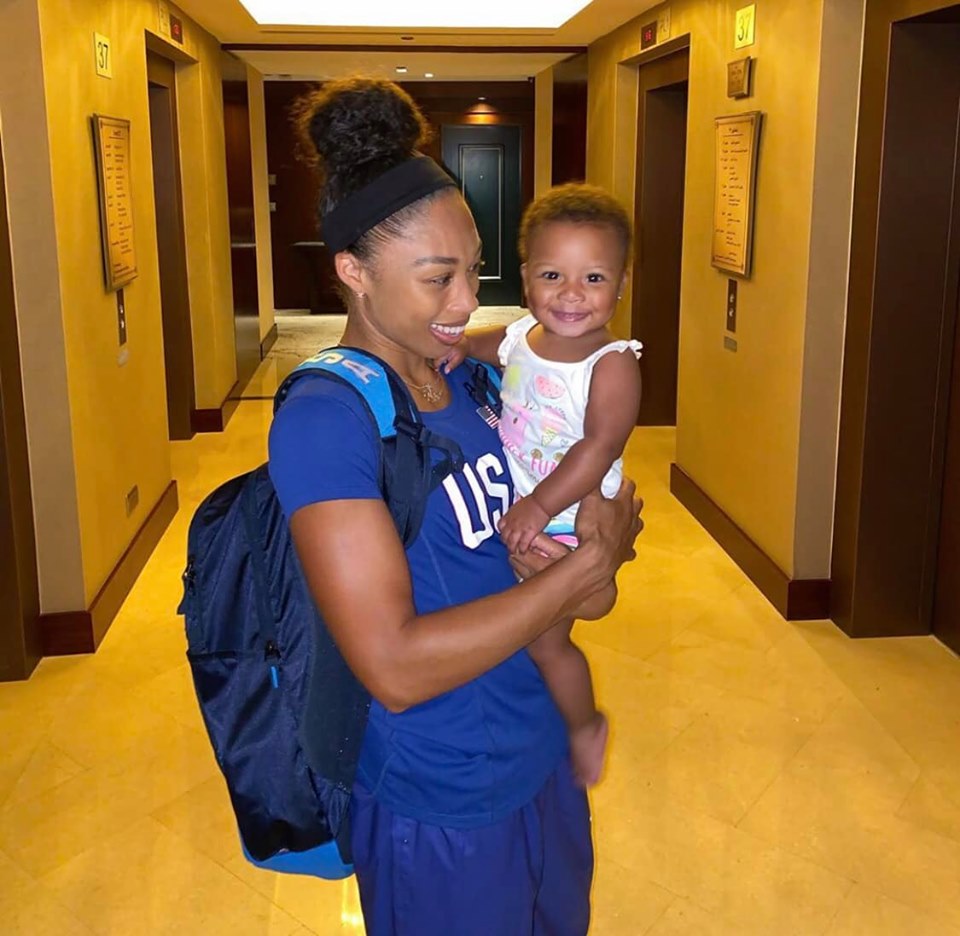 АНУ-ын багийн бүрэлдэхүүнд домогт Эллисон Феликс гүйж, ДАШТ-ий 12 дахь алтан медалиа зүүлээ. 2017 оны ДАШТ-ээс хоёр алт, нэг хүрэл медаль хүртээд 19 жил завсаргүй гүйсэн их спортоосоо түр завсарлага авч , 2018 оны арваннэгдүгээр сард охин төрүүлэн ээж болсон билээ. Хэдийгээр кесарево хагалгаа хийлгэн, хүндрэлтэй төрсөн ч ердөө сар хагасын дараа л бэлтгэлдээ эргэн орж, өнгөрсөн 5 дугаар сард албан ёсоор тэмцээнд оролцсон. Ийнхүү 10 сартай охинтойгоо Катарт ирсэн Феликс дэлхийн АШТ-ий бүх цаг үеийн түүхэн дэх хамгийн олон алтан медаль(12)-тай хөнгөн атлетикч болж, аугаа Усайн Болтын өмнө бичигдэх боллоо. ДАШТ-ээс хүртсэн нийт медалийн тоогоор ч Эллисон 17 медальтай (12 алт, 3 мөнгө, 2 хүрэл)тасархай . Түүний араас “Цахилгаан” Болт 14 медаль(11 алт, 2 мөнгө, нэг хүрэл) бичигдэж байна даа.
