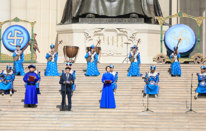 Монгол төрийн үндэсний их найрал, симфони найрал хөгжимчид, Морин хуурын чуулгын уран бүтээлчид Хөдөлмөрийн баатар, Төрийн шагналт, Урлагийн гавьяат зүтгэлтэн Б.Шаравын хөгжим “Сэрсэн тал” аялгууг Чингис хааны хөшөөний урд эгшиглүүлж тус өдөрлөгийн албан ёсны нээлт ийнхүү эхлэв.