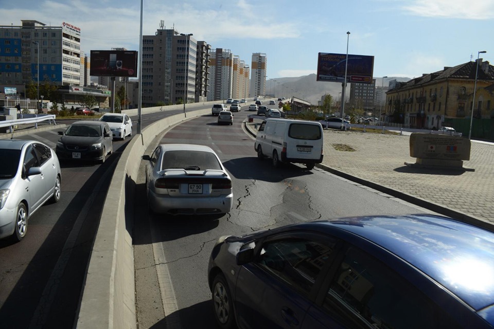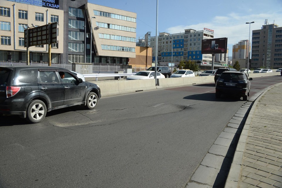 Баруун дөрвөн замаас Нарны гүүр рүү өгсөх уулзварт зам цөмөрсөн байна. Хурдтай яваа жолооч нар цөмөрсөн хэсэгт автомашинаа эвдэх эрсдэл байгаа юм.