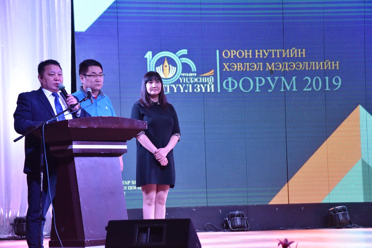 2019.04.20-22. МСНЭ "Орон нутгийн хэвлэл мэдээллийн II форум”-ыг Найрамдал олон улсын хүүхдийн цогцолборт өдрүүдэд зохион байгууллаа. Тус форумд 21 аймгийн 100 хэвлэл мэдээллийн байгууллагын сэтгүүлч, уран бүтээлчид оролцлоо. Форумаар Хэвлэл мэдээллийн салбар дахь мэдээллийн аюулгүй байдал, өрчин цагийн чөлөөт хэвлэлийн асуудал, сэтгүүлчдийн ур чадвар, орон нутгийн сэтгүүлчдэд тулгамдаж буй асуудал, сэтгүүл зүйн бичвэр түүнд тавигдах шаардлага, төрөл зүйлүүдийг хэлэлцсэн юм.