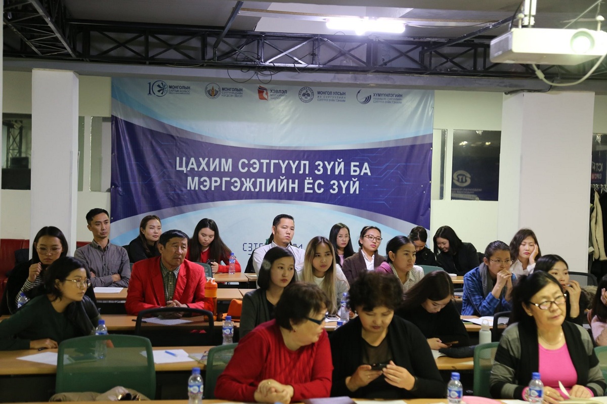 Монголын Сайтын холбооноос Монголын Сэтгүүлчдийн нэгдсэн эвлэл, Хэвлэл мэдээллийн зөвлөл, МУИС-ийн Сэтгүүл зүйн тэнхим, ХУИС-ийн Сэтгүүл зүйн тэнхимтэй хамтран “Цахим сэтгүүл зүй ба мэргэжлийн ёс зүй” сургалтыг өчигдөр /2019.10.11/ зохион байгууллаа. Монголын Сайтын холбоо 10 жилийн ойгоо тохиолдуулан сэтгүүлч, сэтгүүл зүйн чиглэлээр суралцаж буй оюутнууд руу чиглэсэн цуврал сургалтуудыг зохион байгуулж байгаа юм. Энэ удаагийн сургалтад 60 гаруй хүн хамрагдсаны дийлэнх нь МУИС, ХУИС-ийн оюутан байлаа.