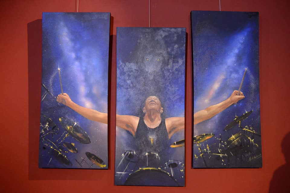 Үзэсгэлэнг нэгэнтээ гороолоход хамтлагийн дуучин Х.Лхагвасүрэнгийн зургийг зураачид голдуу амилуулсан харагдана. Лхагвасүрэнгийн өвөрмөц гадаад төрх, урт хар савхи, өөрт нь зохисон буржгар үс, хүзүүний эрхи, гархи сэлт, дуун цацруулагчаасаа намируулсан өнгө, өнгийн хадаг нийлээд нэгэн бүхэл онгодлог төрхийг бүрдүүлэх бөгөөд зураг бүхнээс нь түүний дуу хоолой сонсогдох шиг. Уран бүтээлч сэтгэлгээ, урлан бүтээхүйн сэтгэлийг бүтэ элийнхээ зураас, татлага, эд эс бүхэнд шингээсэн нэгэн бүтээлийн өмнө удтал зогсов. Бүр алмайран хөшив. Энэ бол зураач Д.Батбилэгийн “Космос рок” бүтээл. Энэ зургийн мөн чанар агуулга Х.Лхагваа гэхээс илүүтэй Монгол рок-Дорнын рок гэж юу болохыг илэрхийлэхийг зорьсон. Хурдан морины төвөргөөн, хуурын чавхдасны хэмнэлийг Монголчуудын хөх толбоны нэгэн адил генийн сан, удамшилд нь хэзээ ч арилшгүйгээр үлдээсэн өгөгдөлт хишиг гэж би хувьдаа ойлгодог юм. Дөрвөн цагийн эрс тэс уур амьсгалтай болоод ч тэр үү, монгол хүн өлчир чийрэг, зоримог, шийдэмгий, тэсвэр тэвчээртэй. Гаслам халуун ган гачиг, тэсгим хүйтэн зуд турхан гээд амьдрал нь тэр чигээрээ рок хэмнэлтэй, аялгуу нь сансар орчлон, галактикаас өгөгдөлтэй байдаг юм шиг. Үүнийг л дүрсэлж илэрхийлэхийг хичээсэн. Зургаа нарны гэрэлд зурж дуусгасан. Учир нь Монгол аялгууг өнгөөр дүрсэлж буулгахад зөвхөн нарны гэрэлд л боломж харагддаг” хэмээн зураач хэлсэн байдаг.