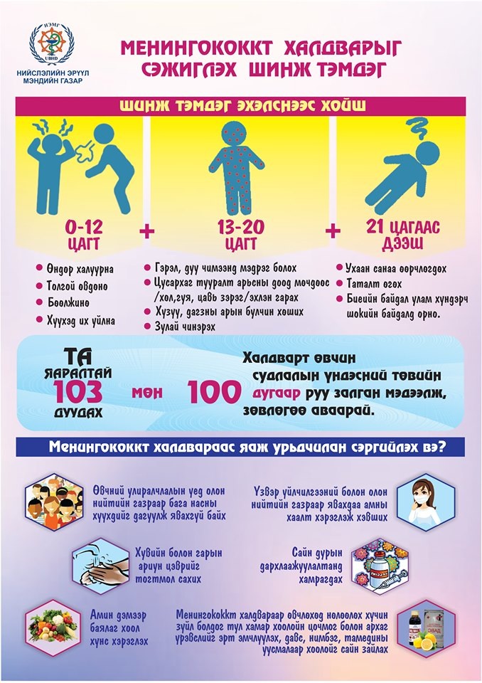Биен дээр нь цусархаг тууралт гарсан бол яаралтай түргэн тусламжийн 103 дугаар, ХӨСҮТ-ийн 100 дугаарт хандаарай.