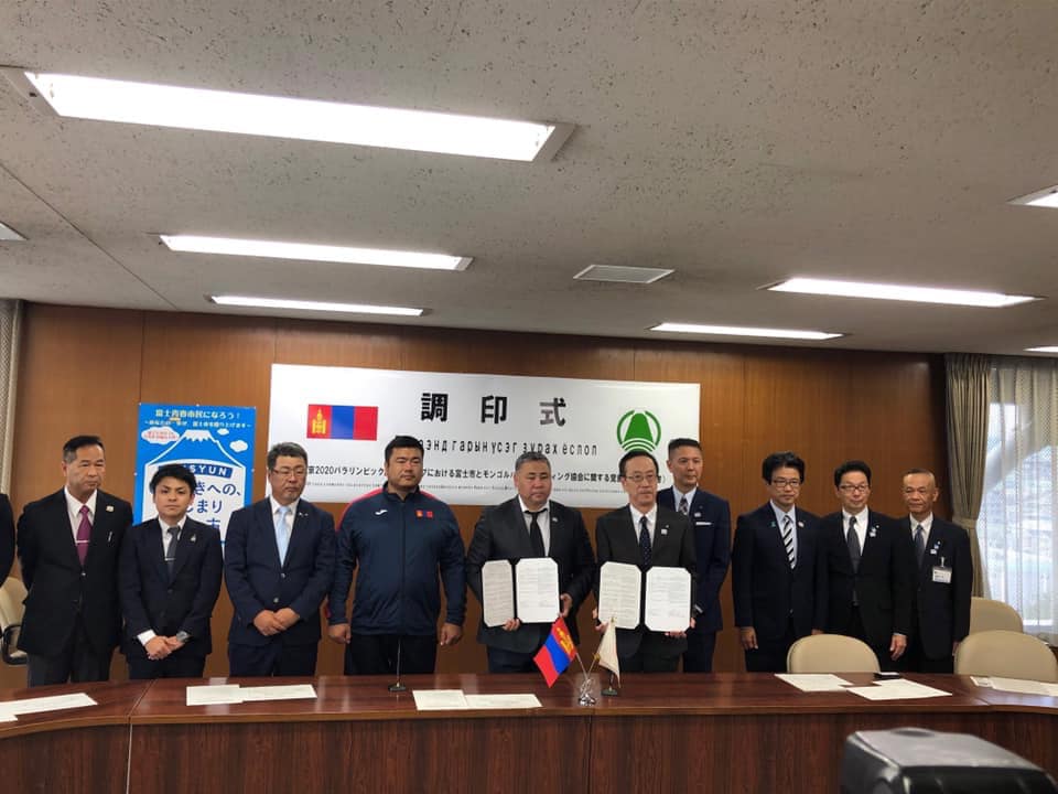 Монголын пауэрлифтингийн нэгдсэн холбооны удирдлага Японы Фүжи хотын захирагч Конагай Ёшимаса, дэд захирагч Морита Масафүми тус хотын Иргэдийн төлөөлөгчдийн хурлын дарга Ичижёо Ёшихиро нартай уулзаж ярилцсаны үр дүнд "Токио-2020" паралимп хүртэл манай тамирчныг дэмжин, хамтарч ажиллахаар болсон байна. Монголын тамирчныг дэмжин ажиллах асуудлыг баталгаажуулж, талууд гэрээнд албан ёсоор гарын үсэг зурлаа.