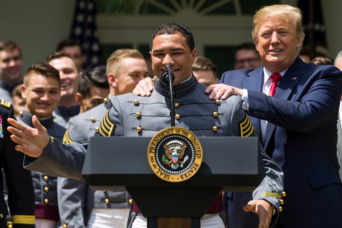 Мянган өдрийн дотор Трамп нэг ч дайн хийгээгүй. Жорж Буш, Билл Клинтон нар Ерөнхийлөгчийн бүрэн эрхийн эхний үедээ Ирак, Югославтай дайтаж байлаа. Харин Трамп цэрэг зэвсгээс илүү улс төр, эдийн засгийн арга хэмжээгээр өрсөлдөгчөө дардаг арга барилтай. 1000 өдрөө Трамп Сириэс цэргээ гаргасан, Афганистанаас удахгүй гаргах шийдвэртэй угтсан. 2017 онд Сирийн Засгийн газар энгийн иргэдийн эсрэг химийн зэвсэг хэрэглэсэн хэмээн Сирид цохилт өгөх тушаал буулгасан нь түүний цорын ганц байлдаан байлаа. Гэхдээ энэ цохилт өргөн хүрээгээр явагдаагүй тул хохирол бага байсан.
