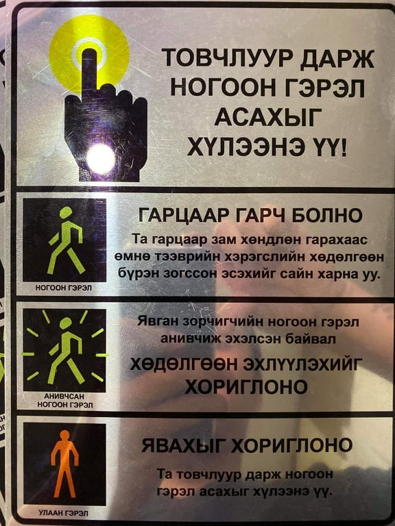 Явган зорчигч өөрөө удирддаг гэрлэн дохио маргаашаас /2019.10.21/ эхлэн ажиллаж эхлэхээр болжээ. Ингэснээр мөн жолооч нар шаардлагагүй зогсолт хийхээ болих юм байна.