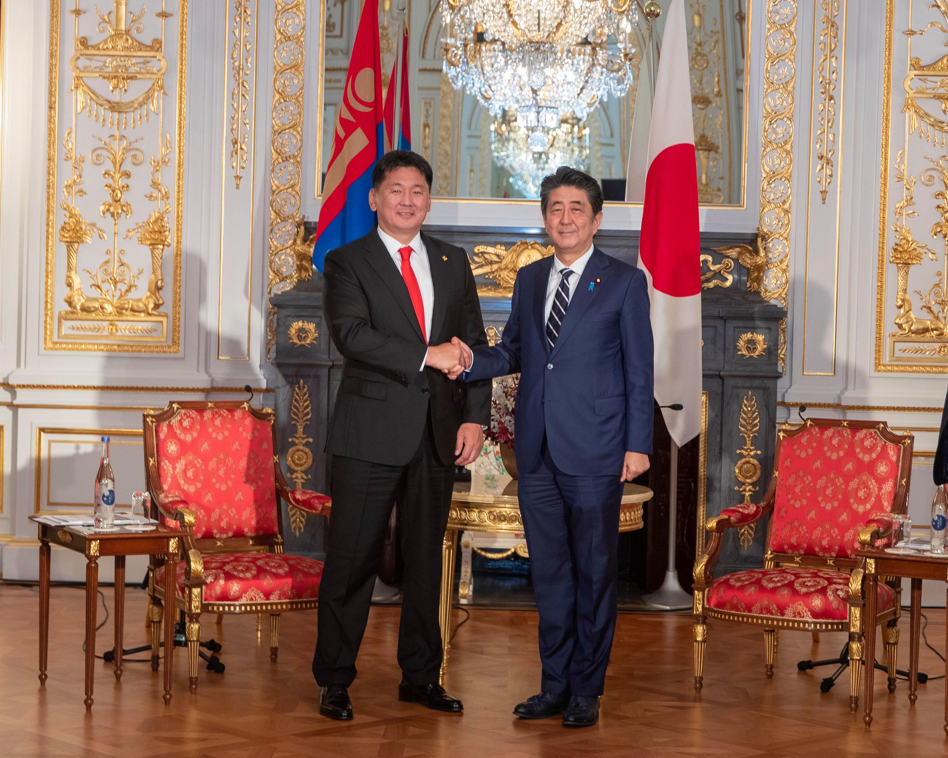 Уулзалтын эхэнд Абэ Шинзо Япон Улсын зарим бүсийг дайрсан “Хагабис” хар шуурга, байгалийн гамшигтай холбогдуулан Монгол Улсын Засгийн газраас эмгэнэл илэрхийлж, хүмүүнлэгийн дэмжлэг үзүүлсэнд талархал илэрхийлээд "Ерөнхий сайд У.Хүрэлсүх өнгөрсөн онд Япон Улсад айлчлах үеэр хоёр талын ярилцсан асуудлууд эдүгээ амжилттай хэрэгжиж байгаад сэтгэл хангалуун байна” гэв. Тухайлбал, Улаанбаатар хотын олон улсын нисэх онгоцны шинэ буудлын менежментийн гэрээг талууд богино хугацаанд байгуулж, ирэх онд ашиглалтад оруулахаар эрчимтэй ажиллаж буйг тэмдэглэв. Абэ Шинзо мөн мөнгөний бодлогодоо зохистой өөрчлөлт оруулж, банк, санхүүгийн зарим хүндрэлээ шийдсэний дараа Япон Улсын Засгийн газраас олгох хоёр дахь шатны төсвийн дэмжлэгийг үзүүлэхэд бэлэн байна гэлээ.