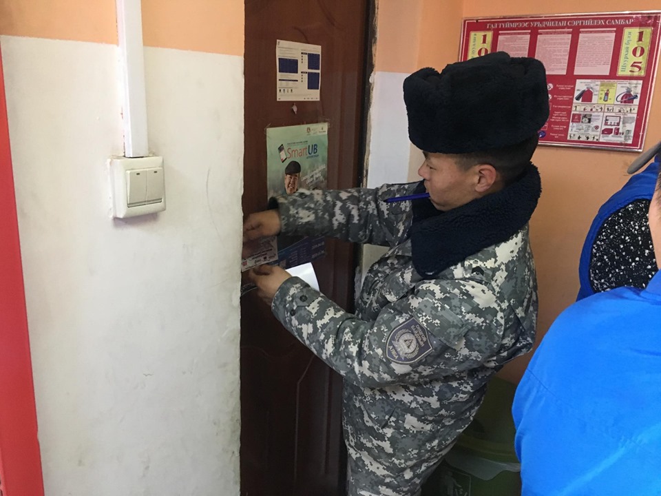 Нийслэлийн Онцгой байдлын газраас “Дэлхийн зөн Монгол” олон улсын байгууллагатай хамтран хэрэгжүүлж байгаа “Гамшигт тэсвэртэй хотууд” төслийн дэмжлэгтэйгээр нийслэлийн хэмжэээнд барилга, байгууламжуудын орц, гарц дээр урьдчилан сэргийлэх сэрэмжлүүлэг, санамж бүхий стикер, наалтыг байршуулах ажлыг зохион байгууллаа.