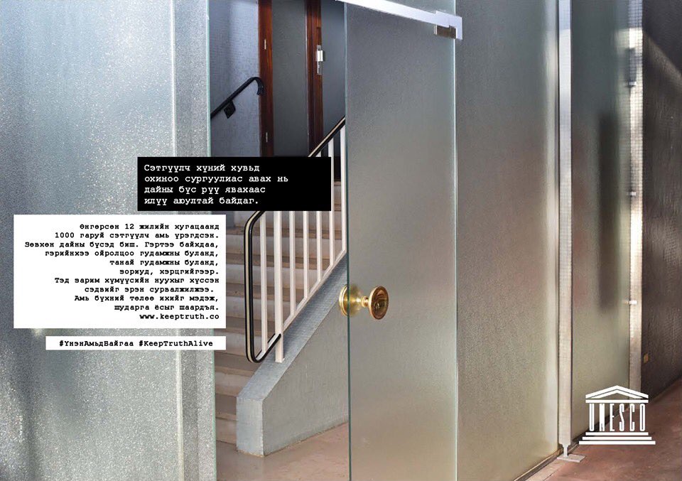 Сэтгүүлчдийн аюулгүй байдлыг хамгаалах эл өдрийг угтан өнөөдөр /2019.11.01/ Глоб Интернэшнл төрийн бус байгууллага болоод Монгол Улс дахь ЮНЕСКО, Европын Холбооноос Монгол Улсад суух Элчингийн газраас мэдээлэл хийсэн юм.