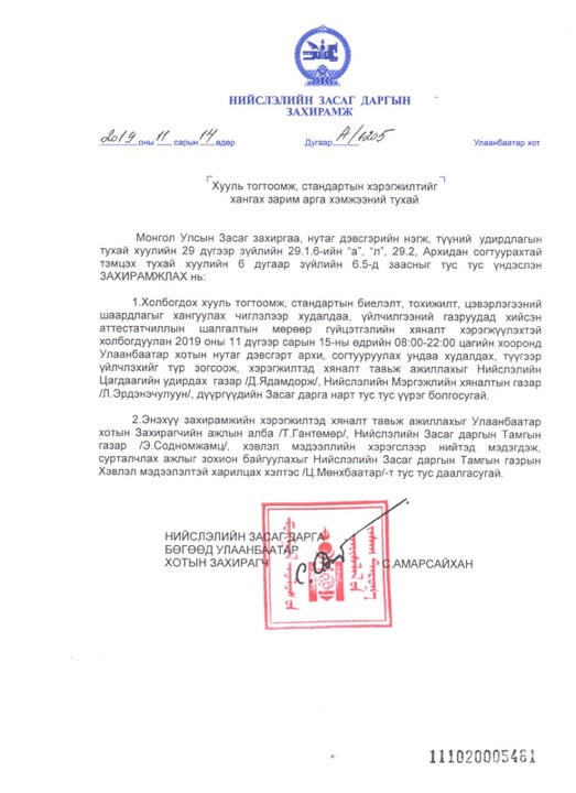 Хууль тогтоомж, стандартын хэрэгжилтийг хангах зарим арга хэмжээний тухай тус захирамжид,