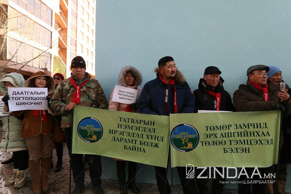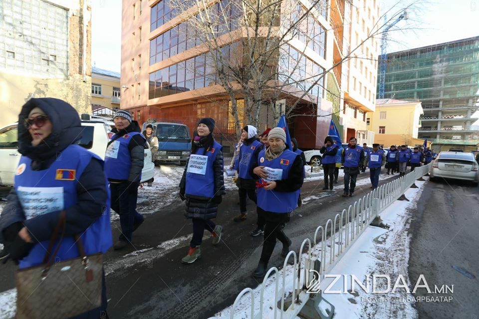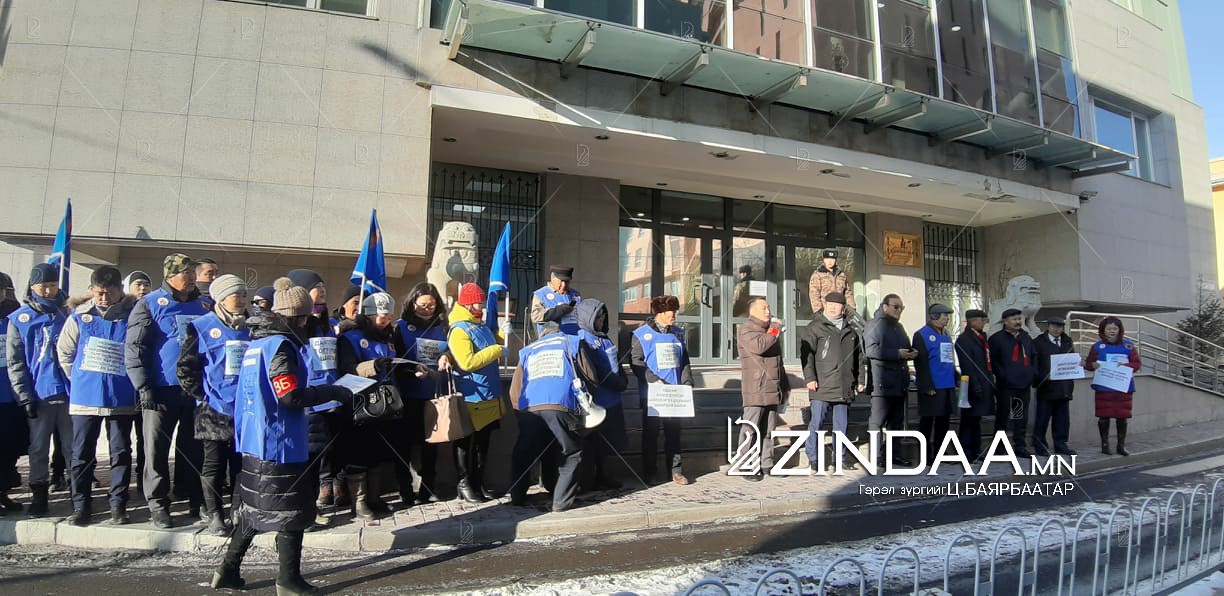 Сангийн яамны гадна талбайд яг одоо Нийгмийн даатгалын шимтгэл нэмэхийг эсэргүүцэж, Үйлдвэрчний эвлэлийн байгууллагын гишүүд жагсаал зохион байгуулж байна.