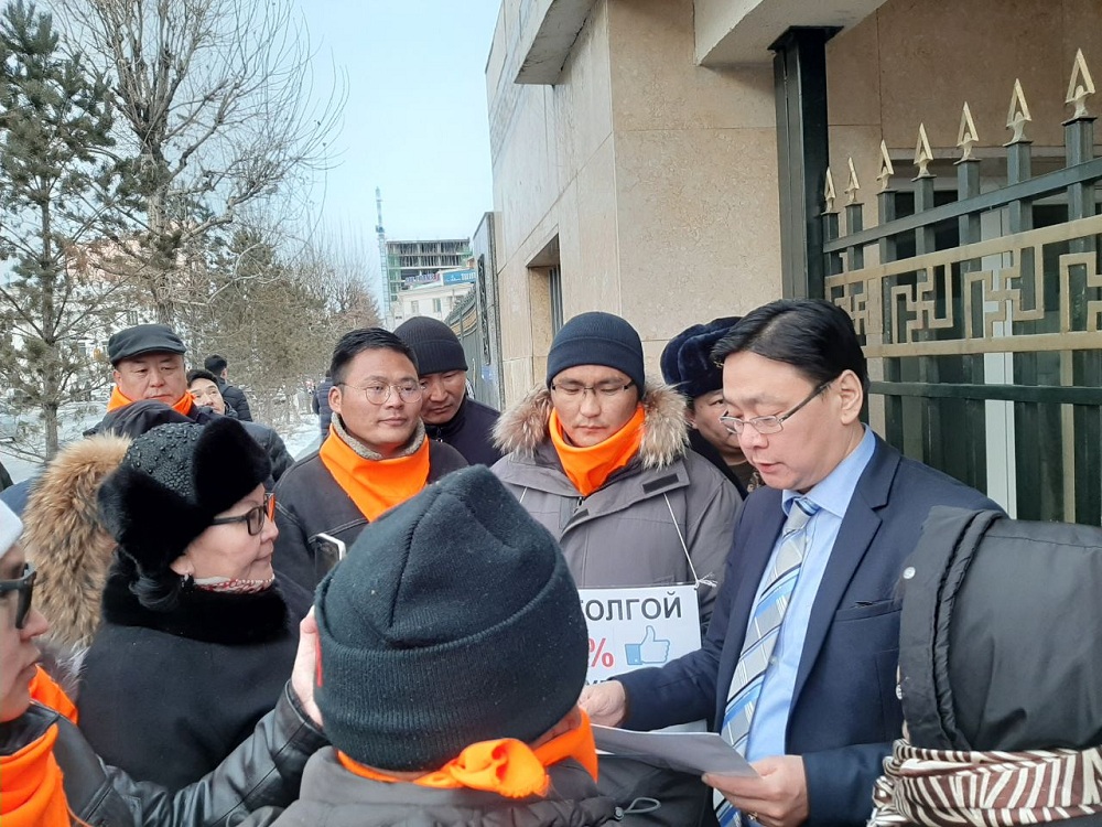 Монгол Улсын Их Хурлын даргад хандаж “Ард түмний штаб” хөдөлгөөнөөс 2019 оны арваннэгдүгээр сарын 13-ны өдөр ирүүлсэн шаардлагын хариуг өчигдөр (2019.11.15) Улсын Их Хурлын Тамгын газрын Хууль, эрх зүйн хэлтсийн дарга Э.Түвшинжаргал гардуулан өглөө.