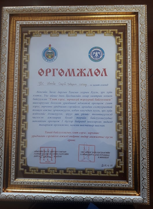 Аймгийн Засаг даргын Тамгын газрын Хууль, эрхзүйн хэлтэс, Цагдаагийн газраас төрийн захиргааны байгууллагуудын дунд зарласан “Гэмт хэрэг, зөрчилгүй тэргүүний байгууллага” шалгаруулах болзолт уралдаанд нийт 23 агентлаг оролцсоноос Онцгой байдлын газрын хамт олон төрийн байгууллагуудыг манлайлан “Гэмт хэрэг, зөрчилгүй тэргүүний байгууллага”-аар шалгарсан байна гэж Онцгой байдлын ерөнхий газраас мэдээллээ.