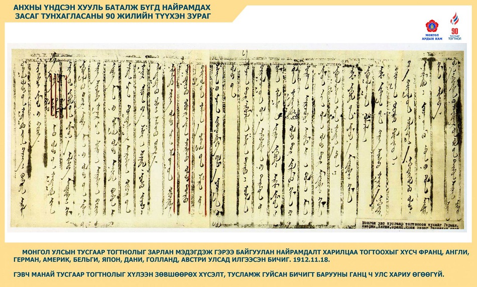Урд хөрш Манж чин гүрний хаяанд гурав илүү зуун жил аж төрсөн Монгол оронд XX зууны эхэн болоход Монголын ард түмний тэмцэл зулын гол лугаа бадамлах болов. Тусгаар тогтнол, эрх чөлөөний олон тэмцэл, уналт, мандалтыг туулсаар үр дүн нь 1911 оны арван хоёрдугаар сарын 29-нд гарсан юм. Чухамдаа энэ өдөр л Их хүрээ буюу одоогийн Улаанбаатар хотод VIII Богд Жибзундамба хутагтыг тулгар төрийн хаанд өргөмжилж Засгийн газраа эмхлэн байгуулж, дэлхий дахинаа зарлан тунхаглажээ.
