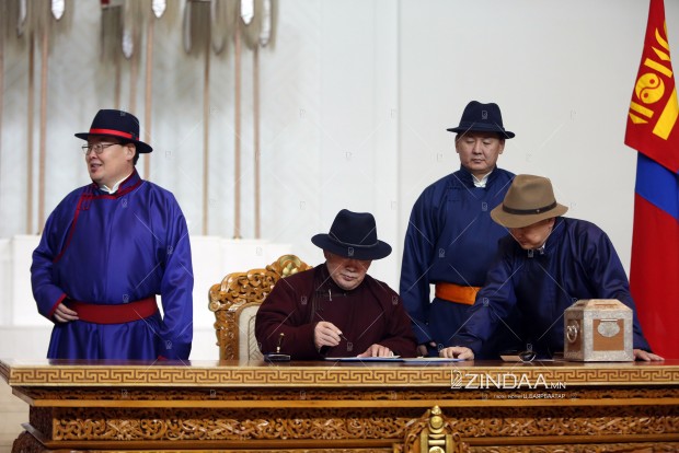 Монгол Улсын Ерөнхийлөгч Х.Баттулга анхдугаар Үндсэн хуулийн 95 жилийн ойн өдөр Монгол Улсын Үндсэн хуулийн нэмэлт өөрчлөлтийн уг эхийг ёсчлон баталгаажууллаа.