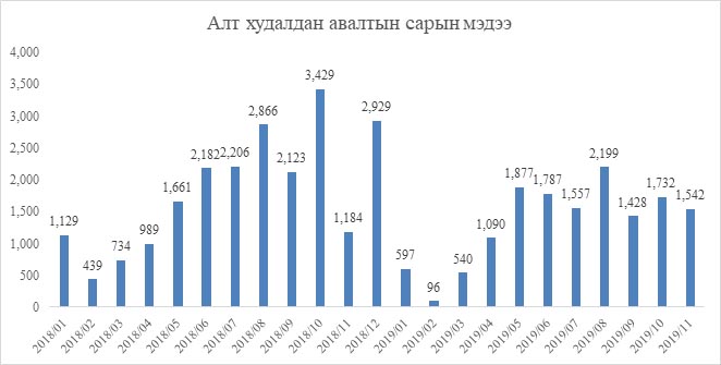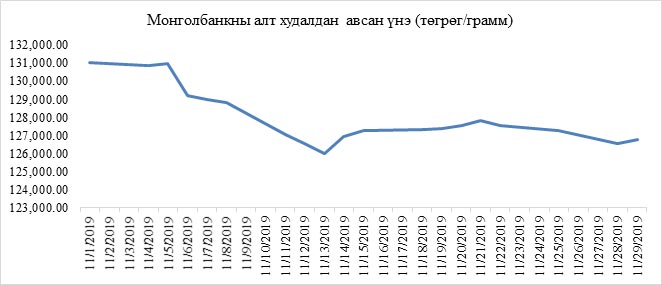 2019 оны 11 дугаар сард Монголбанкны алт худалдан авсан үнэ (төгрөг)