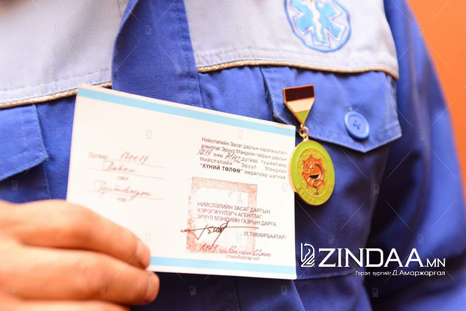 Нийслэлийн Эрүүл мэндийн газраас өнгөрсөн сард гал түймрийн аюулаас таван хүүхэд, хоёр насанд хүрсэн хүнийг аварсан Түргэн тусламжийн 103 төвийн эмч, жолооч нарт өнөөдөр /2019.12.03/ “Хүний төлөө” медаль гардуулан, нэг сарын цалингаар урамшууллаа.
