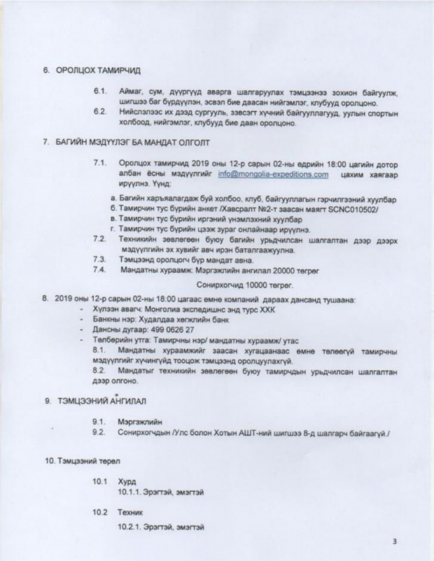 Аймаг сум дүүргүүдээс шалгарсан баг тамирчид, Нийслэлийн их, дээд сургууль, зэвсэгт хүчний байгууллагууд, уулын спортын холбоод, клубууд бие даан оролцоно.