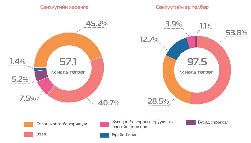 Тэгвэл сүүлийн жилүүдэд санхүүгийн өр төлбөрийн хэмжээ эрчимтэй нэмэгдэж байна. Нийт санхүүгийн өр төлбөрийн хэмжээ 2018 оны эцэст 97.5 их наяд төгрөгт хүрч, 2010 оноос 6.3 дахин өмнөх оноос 6.2 хувиар өссөн байна.