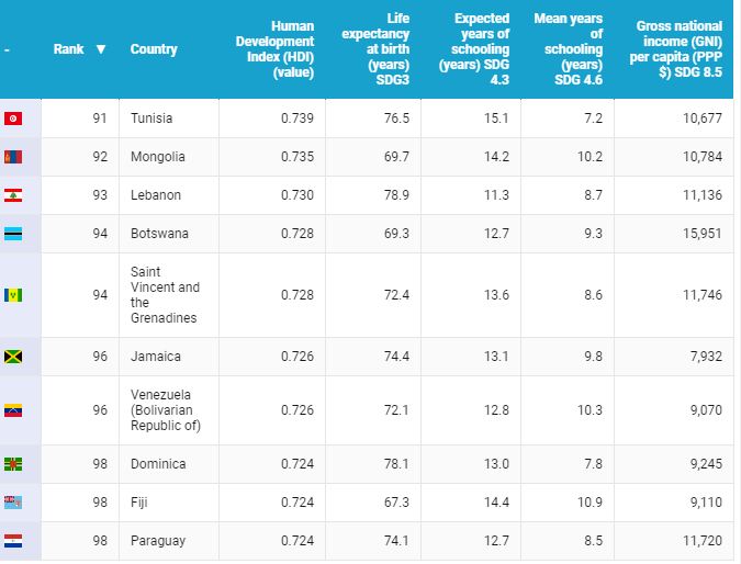 Монгол Улс дундаж наслалтын үзүүлэлтээр 107-д, боловсролын үзүүлэлтээр 103-т, нэг хүнд ногдох Үндэсний нийт орлогын үзүүлэлтээр 190 орноос 120-д бичигдсэн байна.