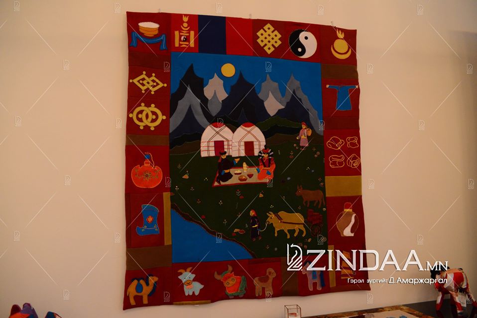 Даавууны өөдсөөр урласан гацуур мод, чихрийн таваг, уламжлалт хээ угалзаар чимсэн түрийвч, орны бүтээлэг, дэр, эсгийний өөдсөөр хийсэн монгол гэрийн чимэглэлүүд үзсэн хүн бүрийн харааг булааж, эртний хаад, хатдын өргөөнд орсон мэт сэтгэгдэл төрүүлнэ. Аравч, хөшиг зэргийг нь барьж үзэхгүй л бол уран зураг гэж эндүүрмээр тансаг.