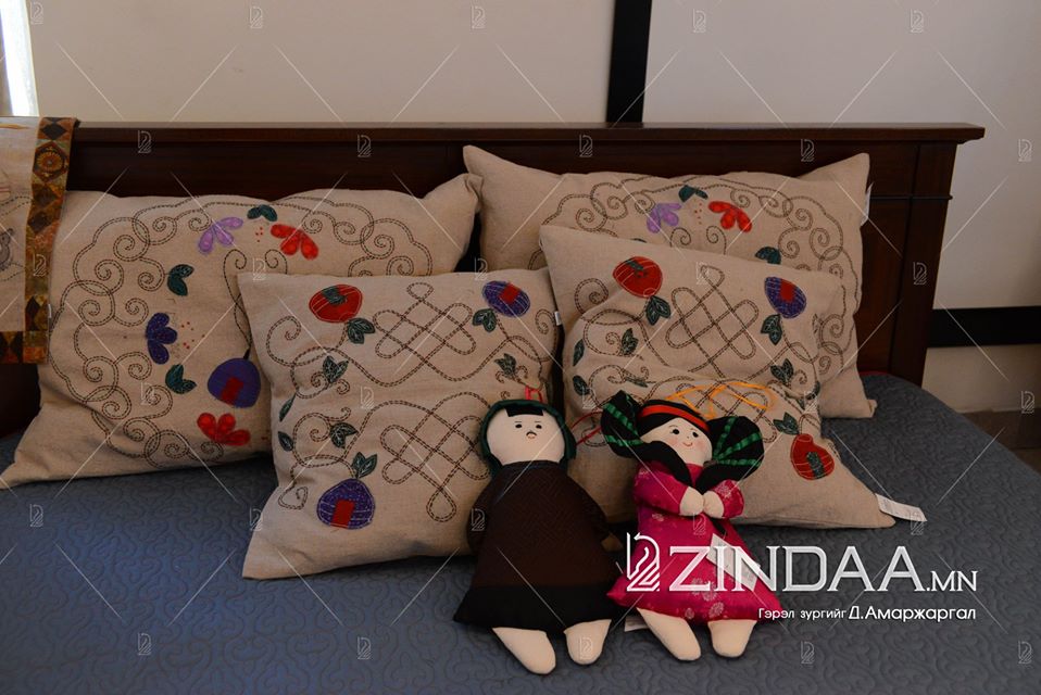 -200 гаруй бүтээл дэлгэгдсэн. Энд дэлгэгдсэн байгаа бүтээгдэхүүний гол онцлог бол гарын доорх материалаар гараар урлан хийдэг учраас дахин давтагдашгүй, өвөрмөц онцлогтой байдаг. Тэр утгаараа үнэлэх үнэлэмж өндөр. Харин өөрөө зүймэл даавуу урлал бүтээхэд зүү, утас, даавуу болон торгоны өөдөс, хайч байхад л болно. Тийм учраас хүн бүр өөрийн брэндээ бүтээж, хайртай дотнын хүндээ бэлэглэх боломжтой.