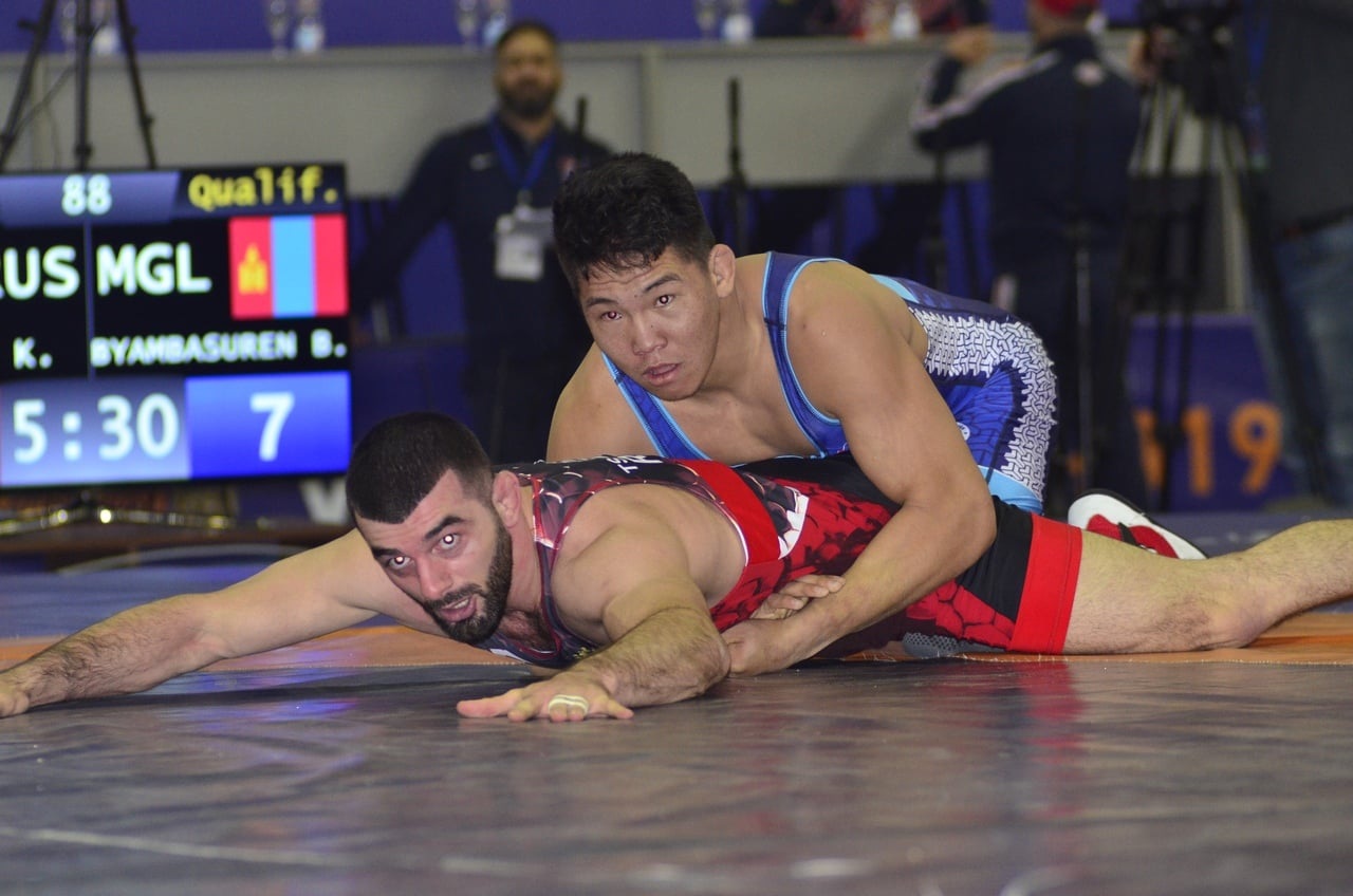 ОУХМ Б.Бат-Эрдэнэ тэгшитгэлд ДАШТ-ий алт, мөнгөн медальт эзэн орны Хетик Цаболовт цэвэр, дагах барилдаанд Дагестаны Магомед Дибиргажиевт оноогоор (1:12) цэвэр ялагдсан. Түүний хувьд дэлхийн аваргыг нутагт нь 7:0-ээр давамгайлж яваад цэвэр ялагджээ.