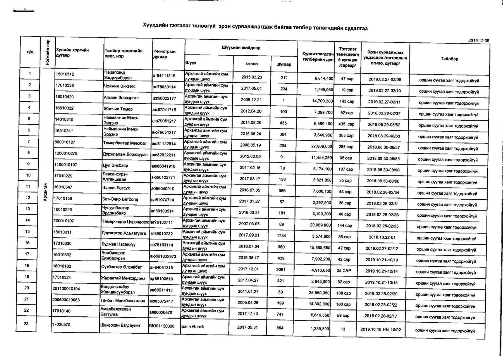Тэд эхний ээлжинд эрэн сурвалжлагдаж буй иргэний нэрсийг зарлаж байгаа бөгөөд цаашид ШШГЕГ-тай хамтран Зөрчлийн тухай хууль болоод Шүүхийн шийдвэр гүйцэтгэх тухай хуулиудад тэтгэмжээ төлөхгүй эцэг эхийн хариуцлагын талаар нэмэлт өөрчлөлт оруулахаар ажиллаж байгаа аж.