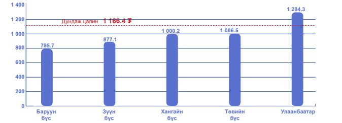 Харин Улаанбаатар хотод ажиллагсдын сарын дундаж цалин 2019 оны гуравдугаар улирлын байдлаар 1.3 сая төгрөг байгаа нь улсын дунджаас 117.9 (10.1%) мянган төгрөгөөр их байна.