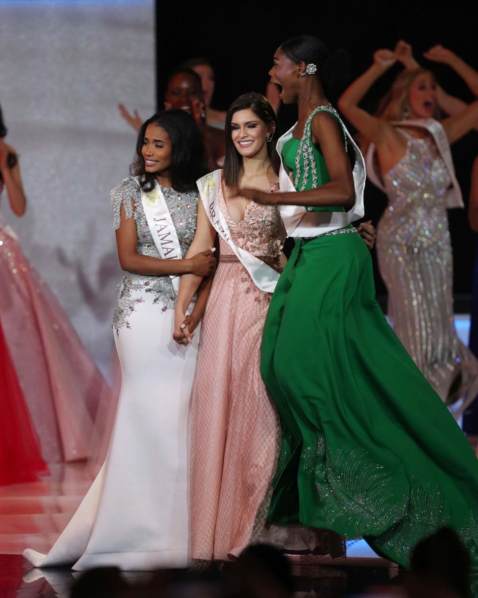 Энэ үеэр 2019 оны манай гарагийн хамгийн үзэсгэлэнтэй бүсгүйгээр тодорсон Сингх шүүгчдийн шийдвэрт итгэж ядан алмайрч, түүнд баяр хүргэн тэврэх Бразилын гоо бүсгүйтэй хамт зогсож байв.