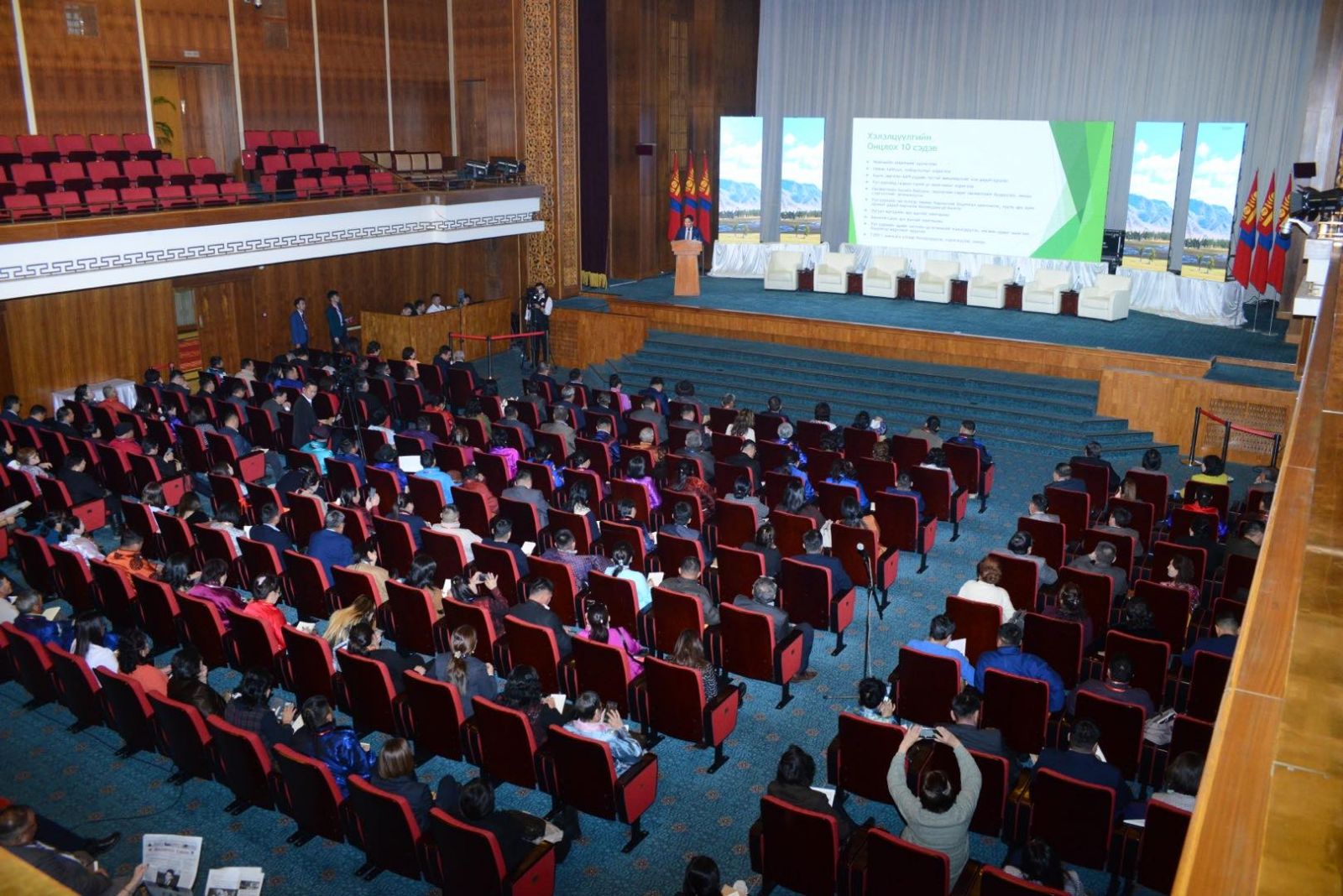 "Байгаль хамгаалах говийн иргэдийн санаачилга", “Босоо хөх Монгол”, “Эрс шинэчлэл хөдөлгөөн”-өөс хамтран зохион байгуулж буй "Байгаль эх-Хариуцлагатай уул уурхай" үндэсний чуулган Төрийн ордонд үргэлжилж байна.