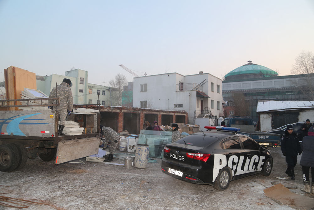 Сүхбаатар дүүргийн 6 дугаар хорооны 39 дүгээр байрны хойд тал, 40 дүгээр байрны зүүн тал, түргэн тусламжийн 102 төвийн авто баазын өмнө талд зөвшөөрөлгүй баригдсан тоосгон 20 гараашийг өнөөдөр /2019.12.19/ Засаг даргын захирамжаар албадан буулгах ажил эхэллээ.