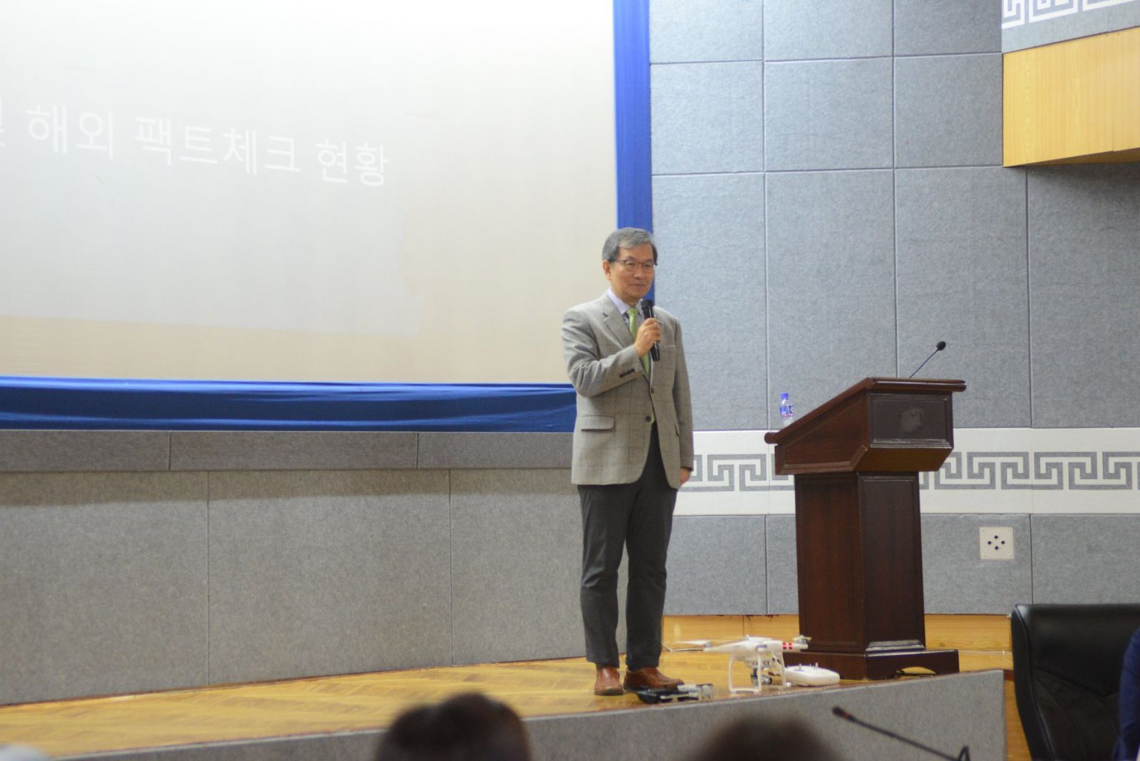 Хэдийгээр ирэх онд сонгууль болох ч тус улсад одооноос олон нийтийн сүлжээ, хэвлэл мэдээллийн хэрэгслээр хуурамч мэдээ, мэдээлэл яваад эхэлчихсэн гэдгийг хэлж байлаа. Тэрбээр энэхүү хандлага, үзэгдэл Монгол Улсад ч гэсэн ялгаагүй, адилхан ажиглагдаж байна гэв. Гэхдээ профессор И Мин Кю сургалтаа зөвхөн Монгол, Солонгос улсын хүрээнд орсонгүй. Харин ч эсрэгээрээ дэлхий нийтэд хуурамч мэдээ, мэдээллийг хэрхэн нягтлах, хэрхэн хөгжиж байгаа талаар дэлгэрэнгүй мэдээлэл өгсөн юм. Ингэхдээ "fact check"-ийн талаар гурван арга, хэлбэрийг түлхүү ярилаа. Харин хоёр дахь сургалт, илтгэлээрээ дроны сэтгүүлзүй гэх өөрийн хөгжүүлж байгаа шинэ урсгалын талаар тодорхой мэдээлэл, ойлголтыг өглөө.