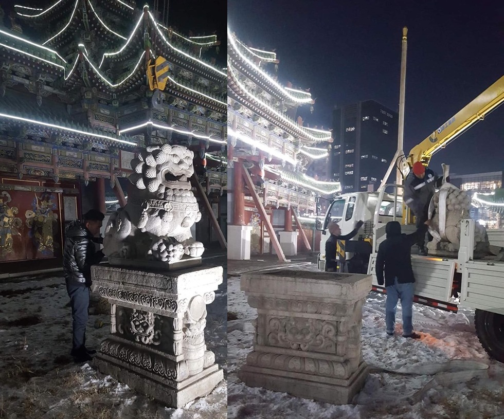 Засгийн газраас Байгалийн түүхийн музейг буулгаж, оронд нь орчин үеийн стандартад нийцсэн "Чингис хааны музей" байгуулах шийдвэрийг энэ оны долоодугаар сард гаргасан. Энэ дагуу өнгөрсөн сард музейн барилгыг буулгах ажлыг эхлүүлсэн юм. Тэгвэл музейн өмнө байсан хоёр чулуун арсланг Богд хааны ордон музейн Амгалан-Энхийн хаалганы өмнө байрлуулжээ. Энэ чулуун арслан анх Богдын Шар ордны шөргөн хашааны үүдэнд байжээ.