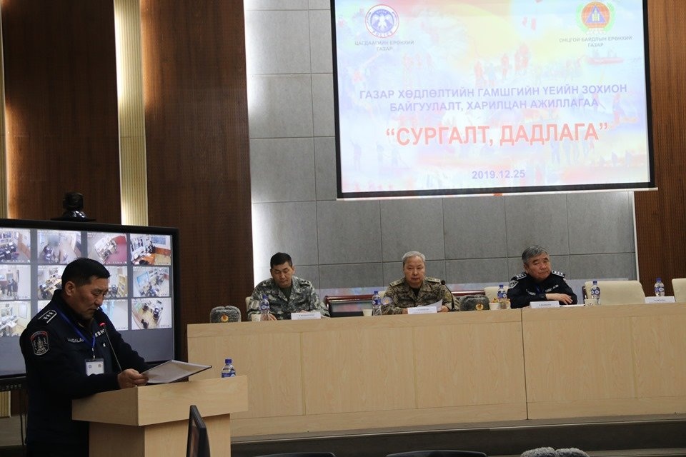 Сургалт дадлагаар Онцгой байдлын ерөнхий газрын Гамшгийн шуурхай удирдлагын газрын дарга хурандаа Б.Мандахгэрэл “Монгол орны нөхцөл байдал”, Холбоо, зарлан мэдээллийн хэлтсийн дарга-ерөнхий инженер хошууч Ч.Лхамжав “Харилцан ажиллагааны холбоо зохион байгуулалт”, бэлтгэл хурандаа Д.Ариундалай “Дотоод зарлан мэдээллийн систем”, Сургалт сурталчилгааны хэлтсийн дарга дэд хурандаа Д.Бат-Эрдэнэ “Ослын үеийн удирдлагын систем” зэрэг сэдвүүдээр мэдээлэл хийн үргэлжилж байна.