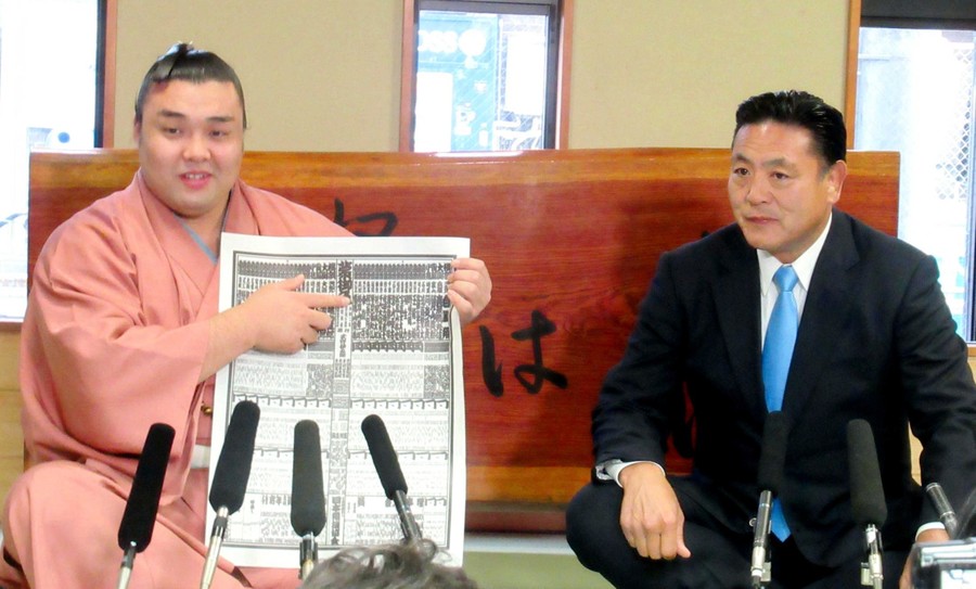Харин Мичинокү ояката “Өнгөрсөн жилийн нэгдүгээр сард манай дэвжээ ганц ч цолтой бөхгүй байлаа. Харин одоо нэг аварга, нэг маэгаширатай шинэ жилээ угтаж байна. Ёкозүнатай хамт бэлтгэл хийж байгаа бөх улам сайн барилддаг ёстой” гэж сэтгүүлчдэд хэлжээ.