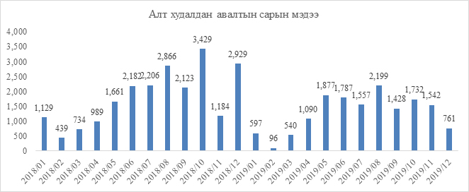 12 дугаар сард Монголбанк 761 кг үнэт металл худалдсан авчээ. Тэгвэл үүнээс Дархан-Уул аймаг дахь Монголбанкны хэлтэс 29 кг үнэт металл, Баянхонгор аймаг дахь Монголбанкны салбар 2.5 кг үнэт металл худалдаж авсан байна.