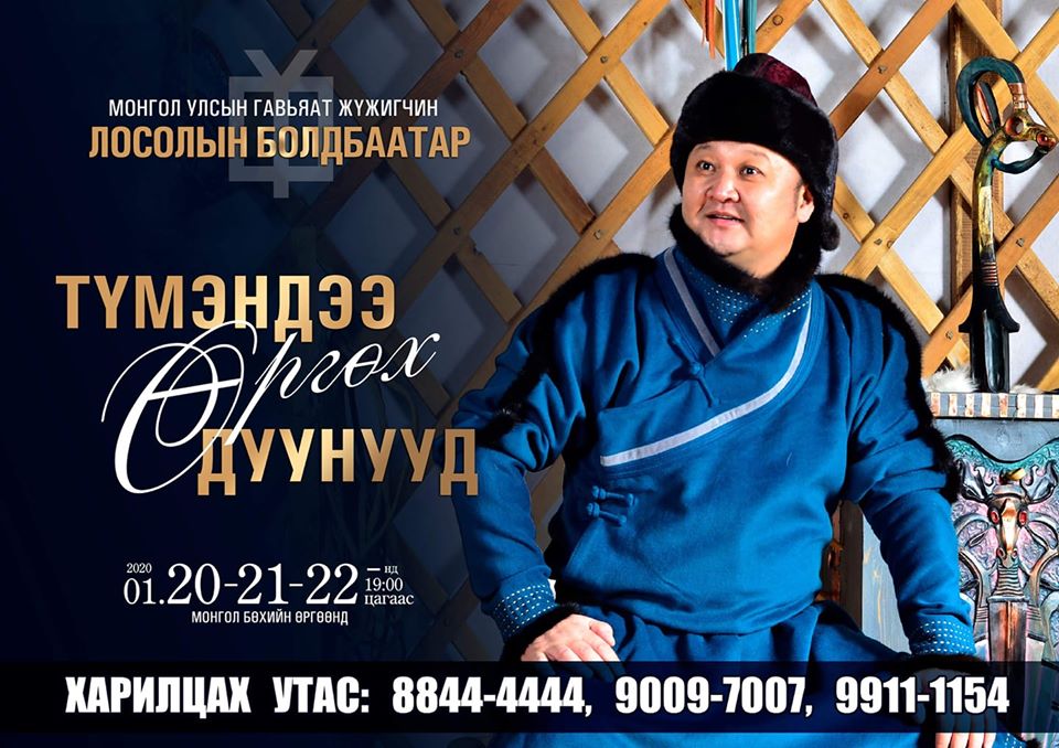 Гавьяат жүжигчин Л.Болдбаатар “ТҮМЭНДЭЭ ӨРГӨХ ДУУНУУД” тоглолтоо хийнэ