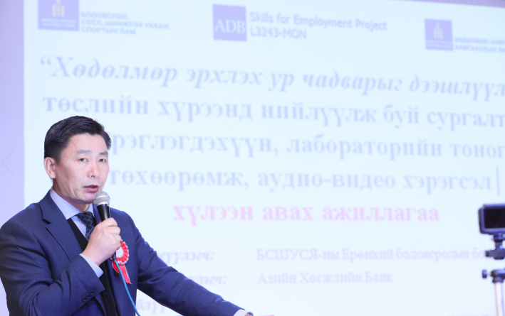Азийн хөгжлийн банкны туслалцаатайгаар хэрэгжиж буй "Хөдөлмөр эрхлэх ур чадварыг дээшлүүлэх" төслийн хүрээнд ийнхүү 555 сургууль математикийн сургалтын хэрэглэгдэхүүн, 134 сургууль физик, 100 сургууль хими, 82 сургууль дизайн-технологийн лабораторийн тоног төхөөрөмж, 316 сургууль аудио-видео хэрэгсэлтэй болж буйг Боловсрол, соёл, шинжлэх ухаан, спортын сайд Ё.Баатарбилэг, Хөдөлмөр, нийгмийн хамгааллын яамны Төрийн нарийн бичгийн дарга Г.Өнөрбаяр нар сургуулийн захирлуудад гардуулан өгөв.