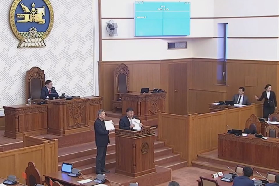 УИХ-ын чуулганы нэгдсэн хуралдаанаар Иргэдийн тэтгэвэр барьцаалсан зээлийн төлбөрийг төрөөс нэг удаа төлөх тухай хуулийн төсөл болон хамт өргөн мэдүүлсэн бусад хуулийн төслүүдийн эцсийн хэлэлцүүлгийг хийж байна.