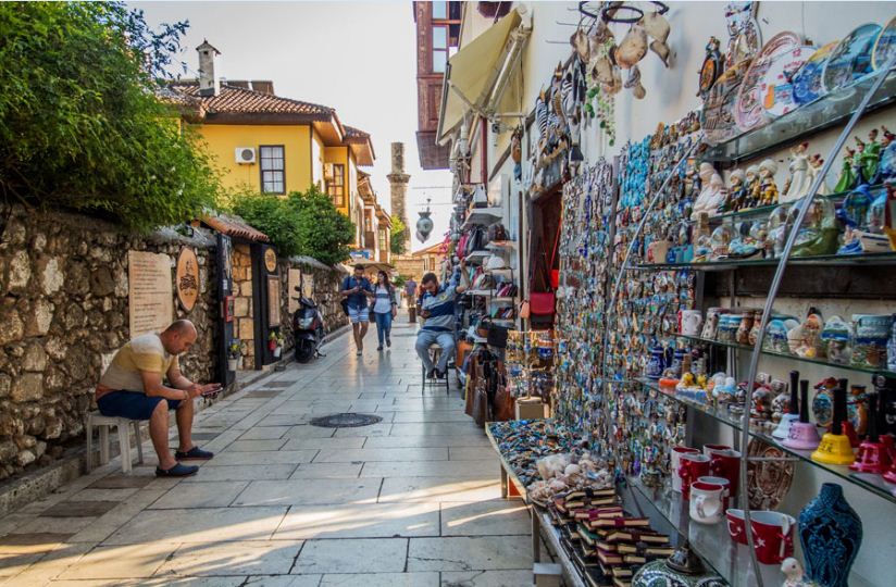 Дюден хүрхрээг үзсэнийхээ дараа бид Антальягийн хуучны хотод ирсэн юм. Хуучны хот Калеичи нь Анталья хотын түүхийн төв хэсэг нь. Калеичи гэх үг нь “цайзны дотор” гэсэн утгатай. Эрт үед энэхүү хотыг хүрээлж байсан цайзан хананууд одоо ч хадгалагдаж үлдсэн байдаг. Гудамжаар нь явган алхангаа дэлгүүрээр орж, бэлэг дурсгалын зүйлс худалдаж аван, жимсний мухлагаас байгалийн цэвэр жимсний ундаа амтлахад хамгийн тохиромжтой газар бол Хуучны хот.