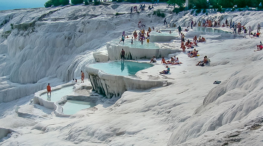 Кальци карбонатаас бүрэлдэн үечилж тогтсон шохойн чулуун тавцангуудаас бүтсэн усан бассейнуудтай Памуккалегийн ус нь хүний биед хэрэгцээтэй эрдэс бодисоор баялаг тул эмчилгээ, гоо сайхны зориулалтаар ашиглаж ирсэн.